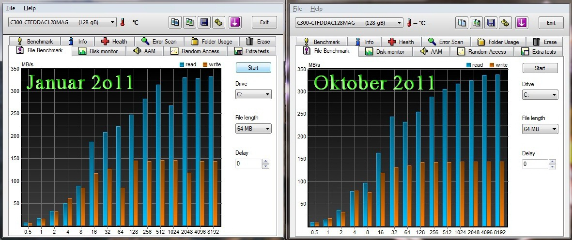 Siri's SSD im Leistungsvergleich eines halben Jahres. |